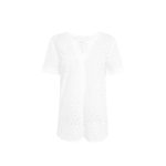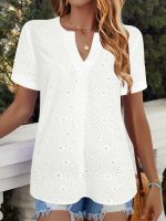This short-sleeve T-shirt features a refined V-neckline with hollow detailing, embodying an elegant French style. Crafted from high-quality materials, it ensures both comfort and a flattering fit. The breathable fabric makes it suitable for everyday wear, combining sophistication with a modern casual appeal. Designed to complement a variety of outfits, this T-shirt enhances any wardrobe with its unique and graceful design.