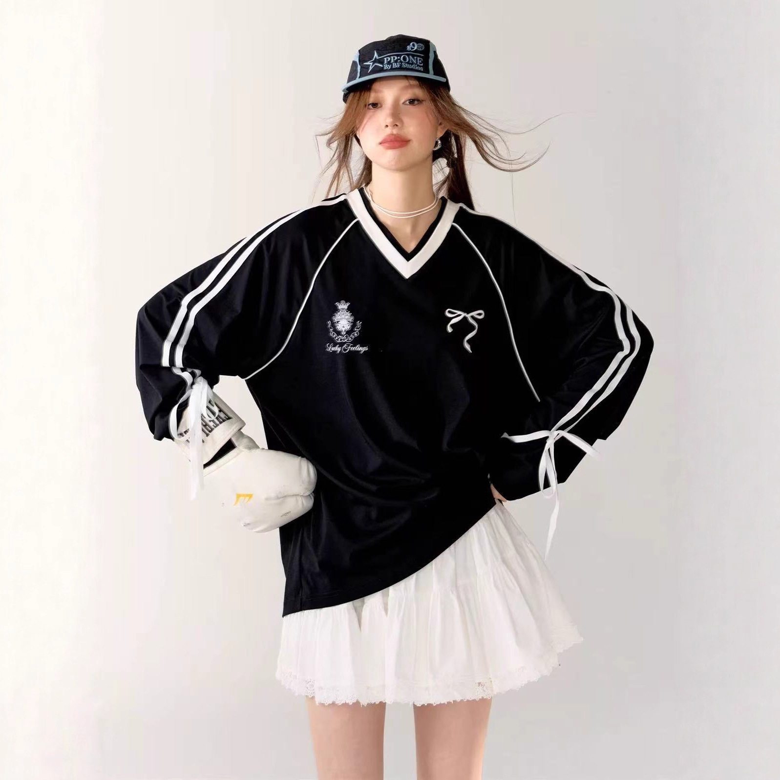 Be the first to review “V-neck Tie Butterfly Long Sleeve Loose Sports Jersey Style T-shirt” Cancel reply