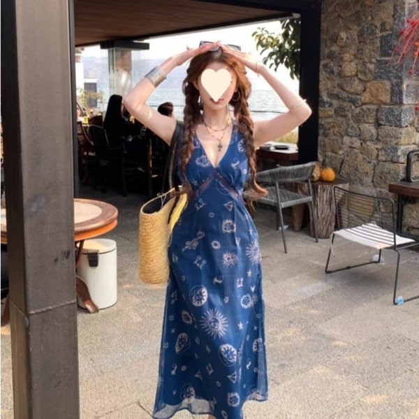 Be the first to review “Vacation Style V-neck Printing Slip Dress Women” Cancel reply