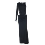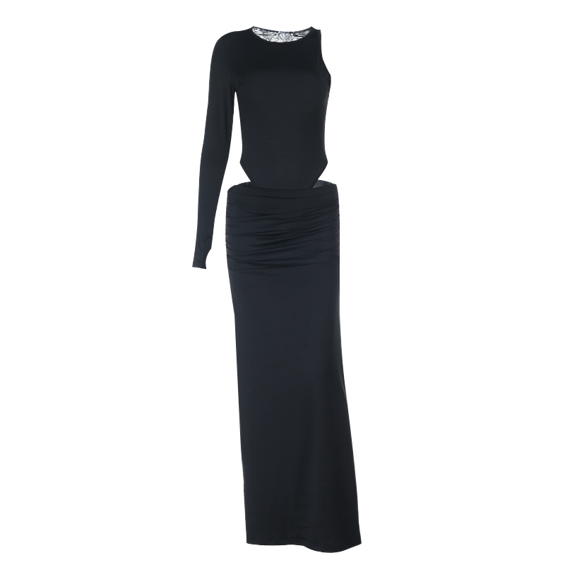 Elegant cropped long-sleeve top and slit skirt set for women, blending comfort and style for versatile wear.