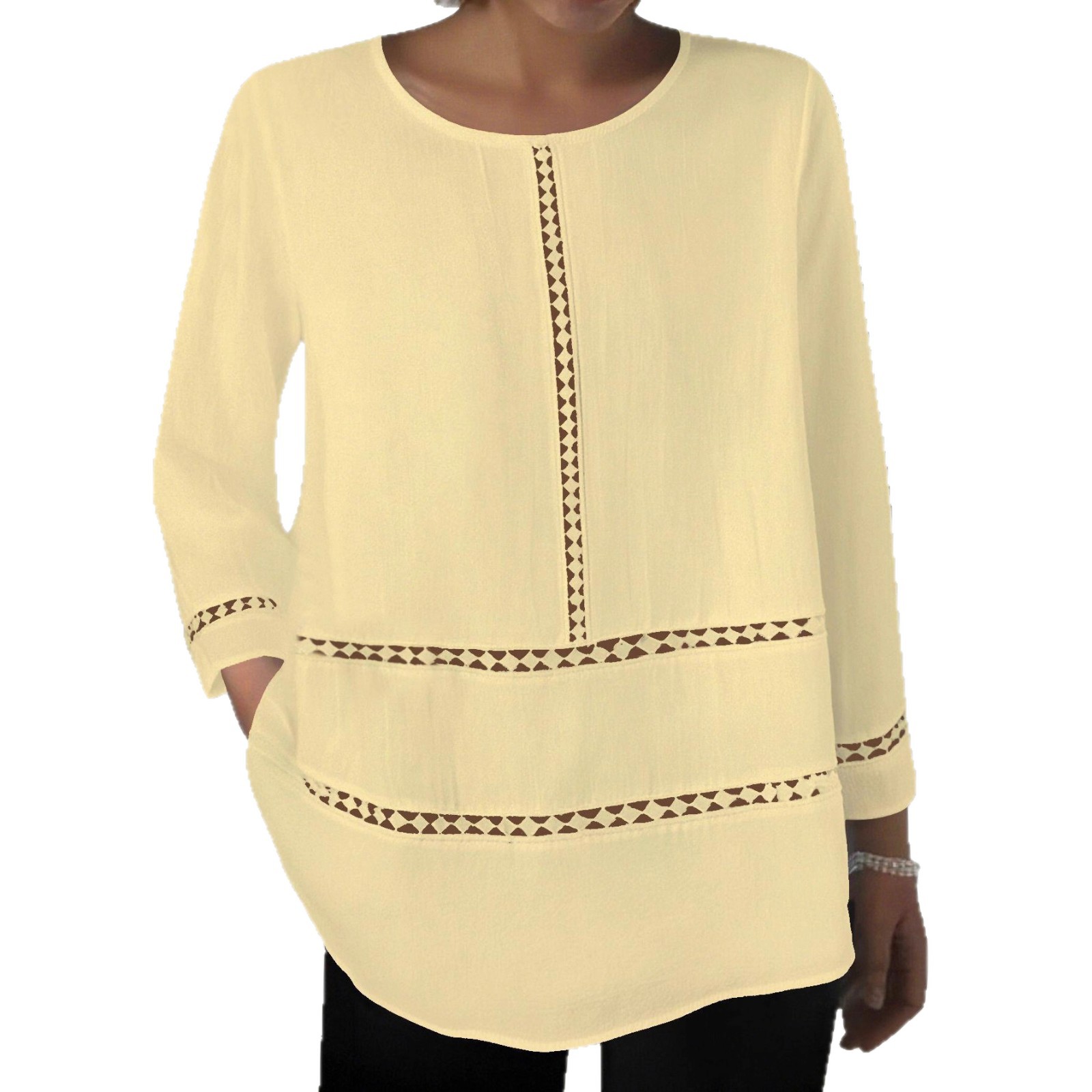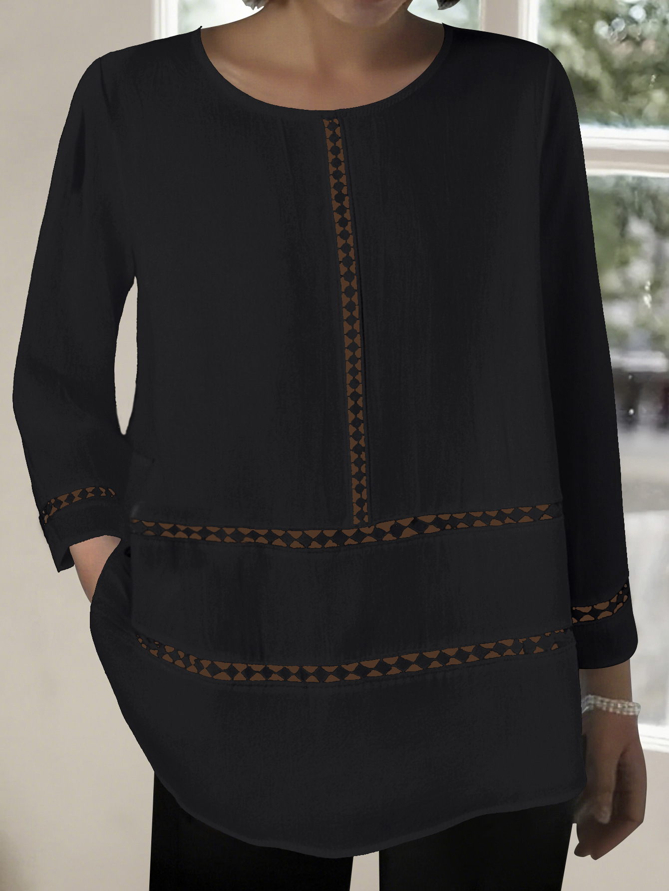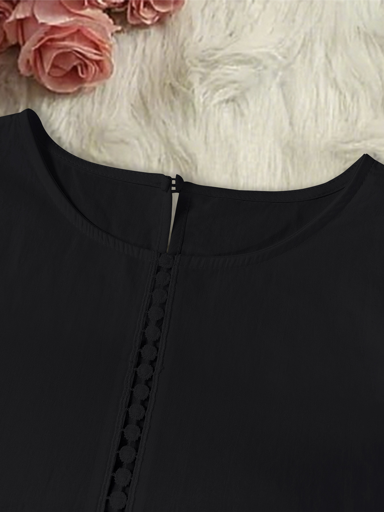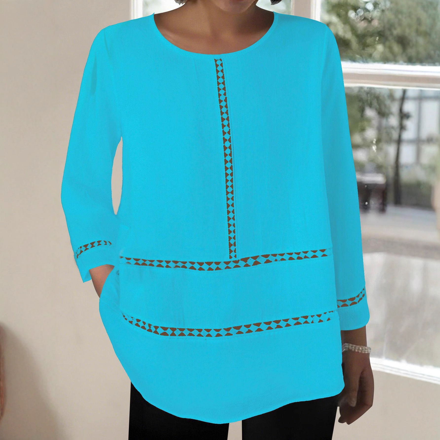 Elegant women’s round-neck long-sleeve shirt with semi-sheer hollow-out design for a stylish, breathable look suitable for diverse occasions.
