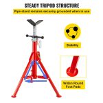 Heavy-duty VEVOR V head pipe stand with adjustable height from 28-52 inches and 2500 lb capacity. Portable, folding steel jack stands for 12-inch pipe support.