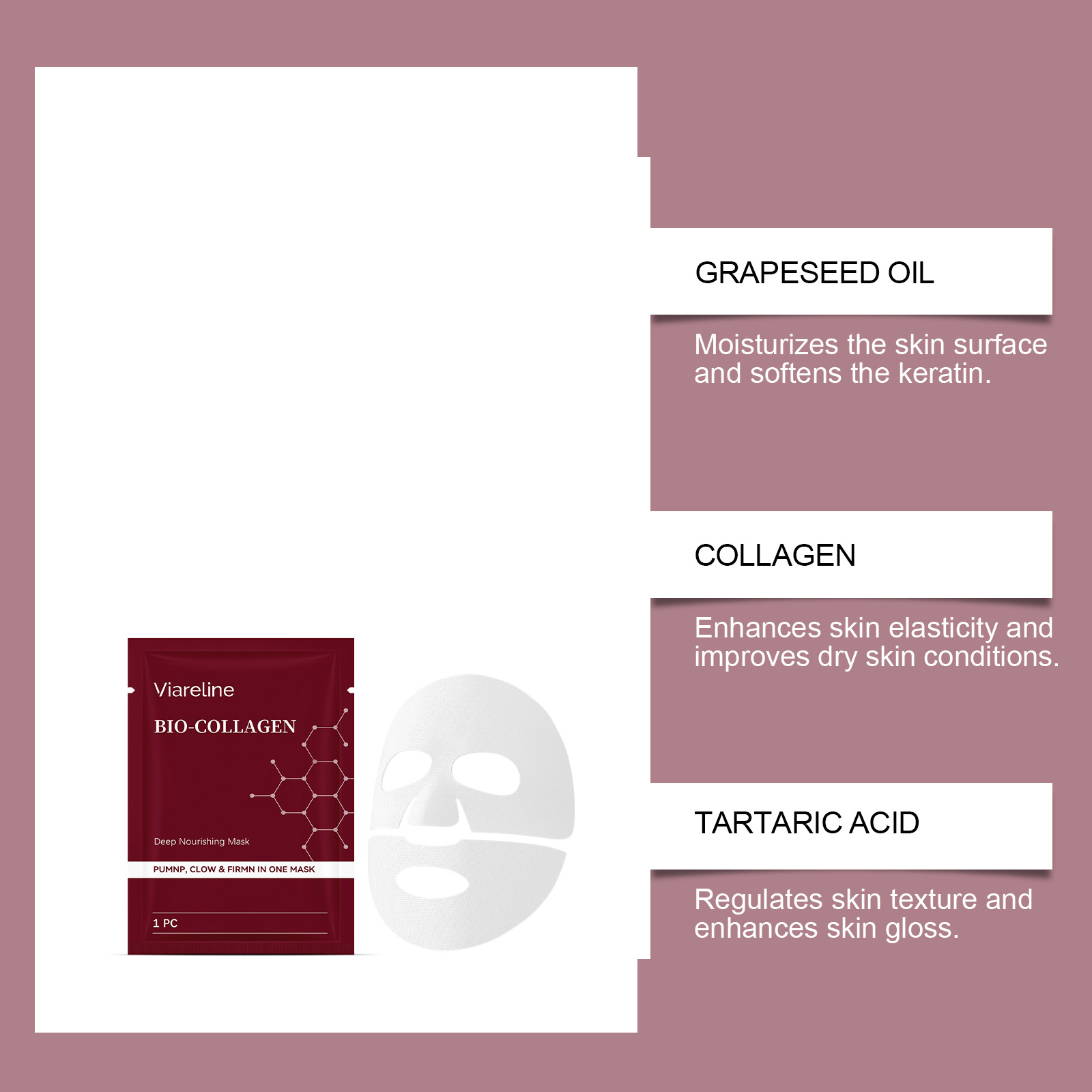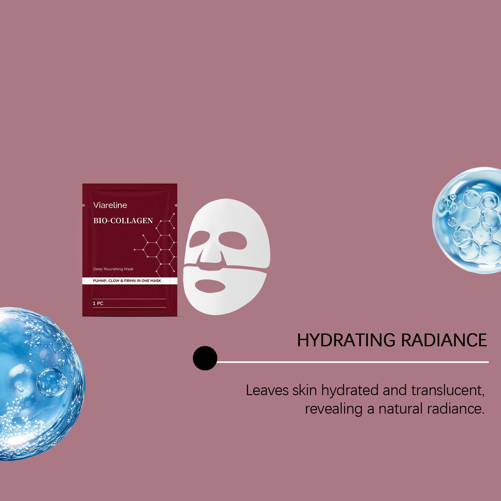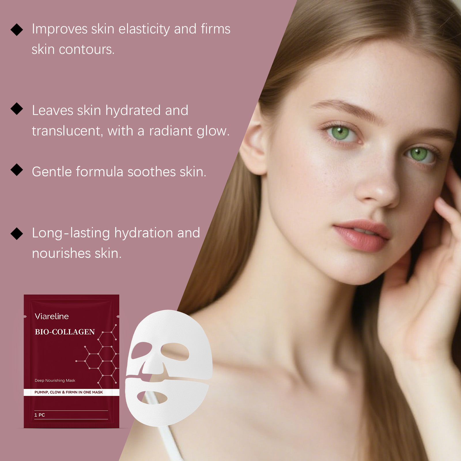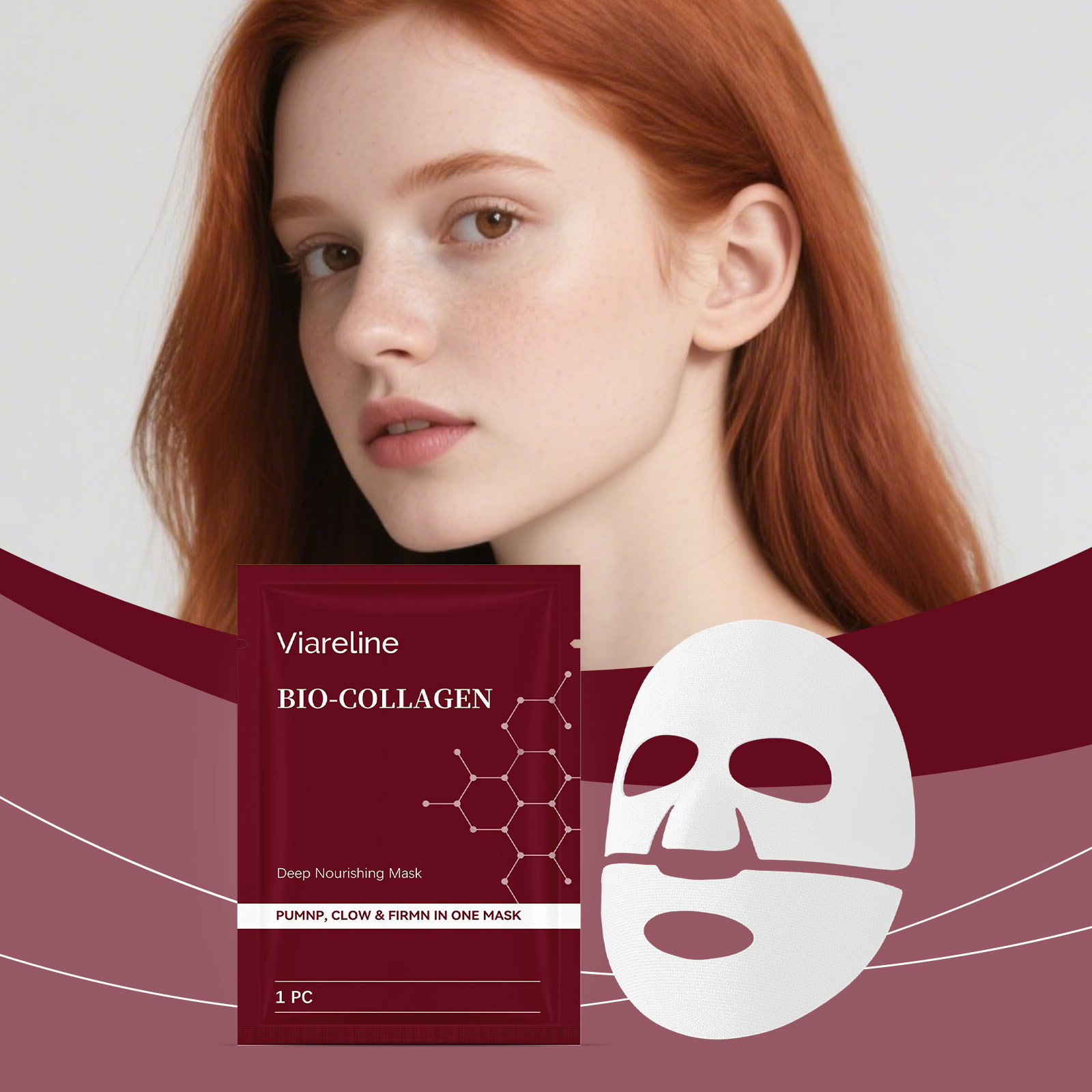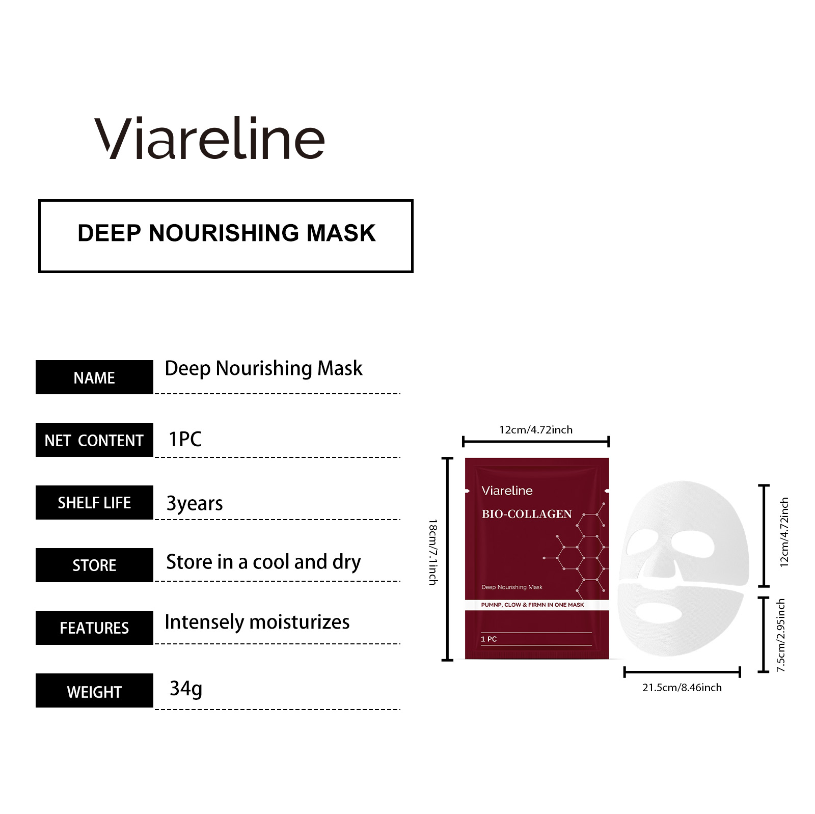 Viareline Collagen Mask deeply hydrates and revitalizes facial skin, enhancing softness and natural radiance.