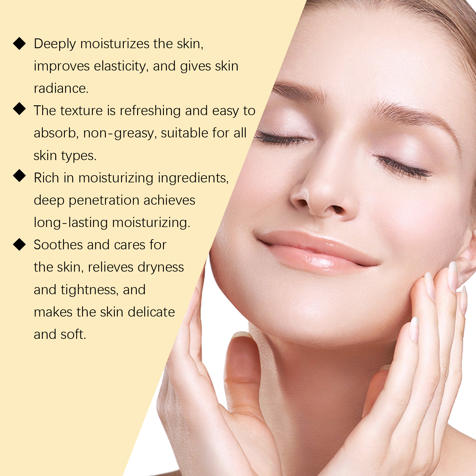 Our VC moisturizing toner is carefully formulated with glycerin, 1, 2-hexanediol and sodium hyaluronate. Specially designed for deep moisturizing, making the skin glow. Quick absorption, say goodbye to greasy design. The usage method is extremely convenient: after facial cleansing. Take an appropriate amount of this product in the palm of your hand or on a cotton pad, and gently pat it onto the facial skin, avoiding the eye area. After absorption, continue with subsequent skin care. And it can moisturize for a long time, has a light and refreshing texture, and is easy to apply.