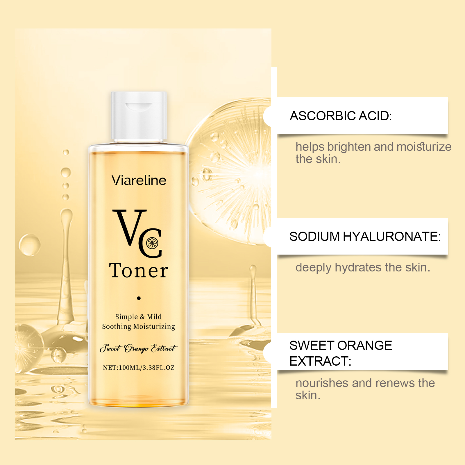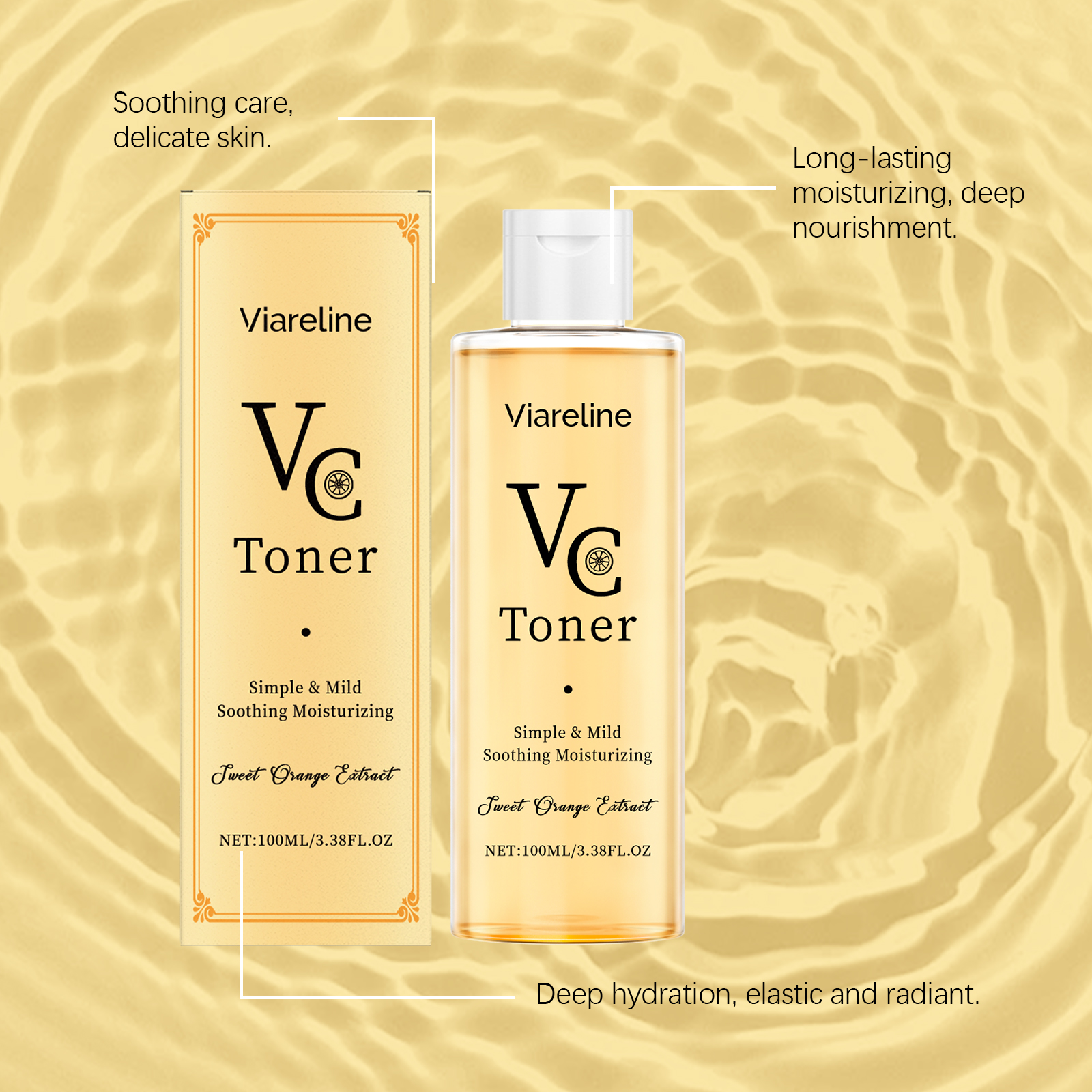 Viareline VC Moisturizing Toner provides deep hydration, refreshment, and skin-soothing benefits with fast absorption and water-locking properties.