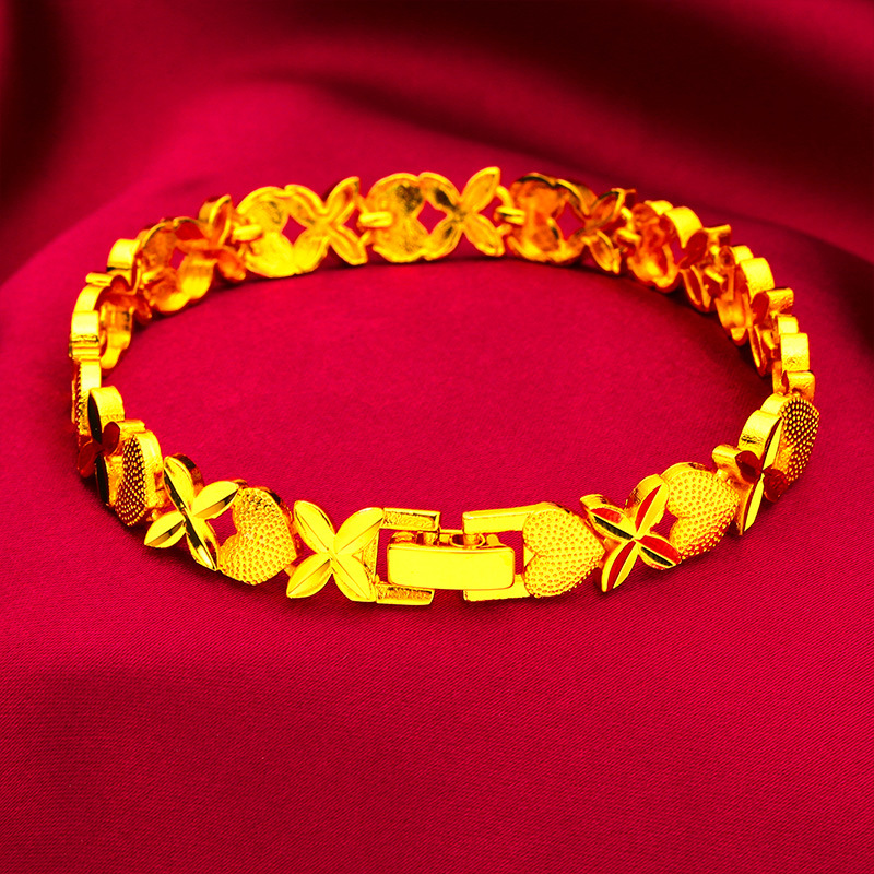 Elegant Vietnamese Sand Gold bracelet featuring a four-leaf clover design symbolizing love and luck.