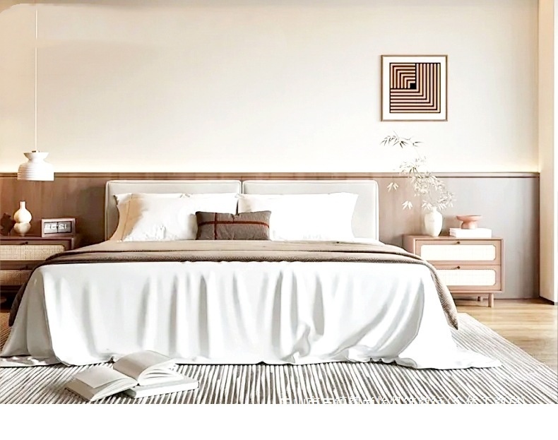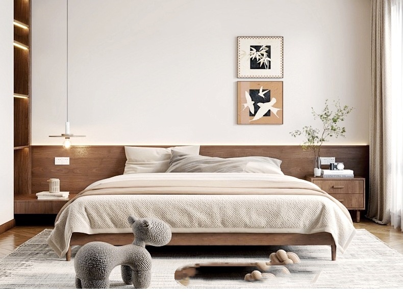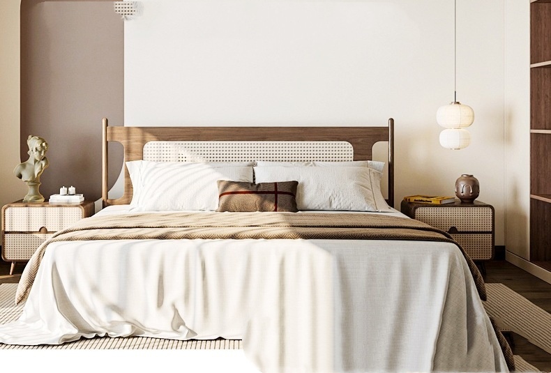 Elegant mid-century walnut tone light fixture designed for master bedrooms, blending vintage style with warm, ambient lighting.