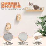 Durable wall mounted cat shelves with jumping posts, hammocks, and removable washable coral fleece cushions for climbing, playing, and resting.