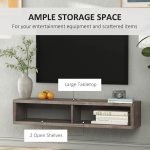 Durable wall mounted TV stand featuring adjustable shelves and built-in cable management for clean, space-saving entertainment setups.
