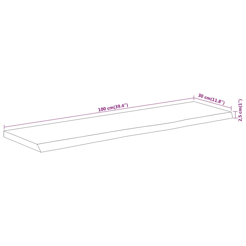 Durable 100x30x2.5 cm wall shelf crafted from solid acacia wood with a natural live edge design for stylish storage.