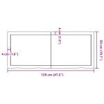 Durable light brown solid oak wall shelf, 120x50x(2-4) cm, treated for longevity and elegant storage solutions.