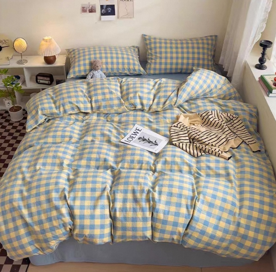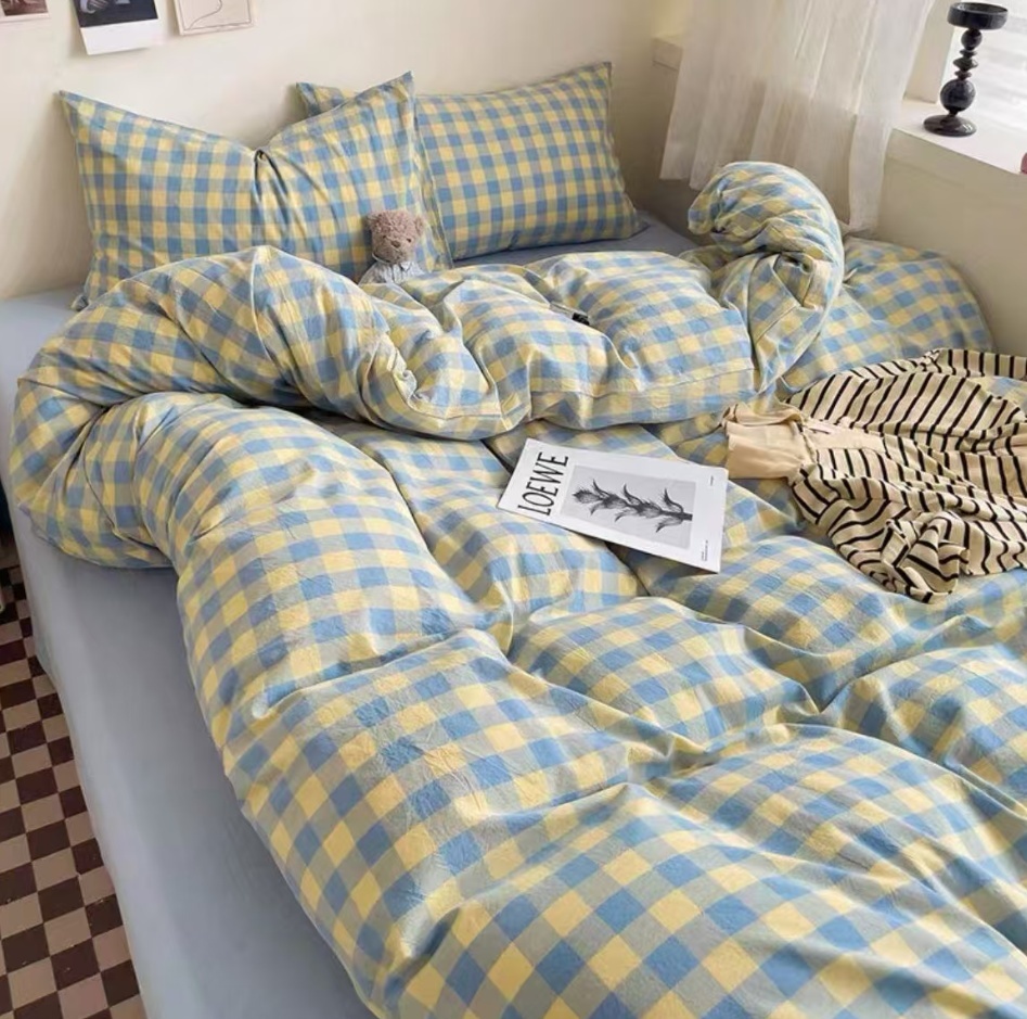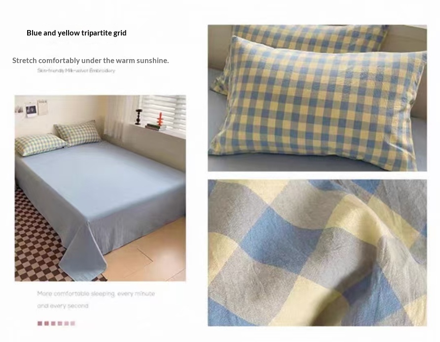 Durable washed cotton three-piece bedding set ideal for student dormitories, offering comfort and breathability for restful sleep.