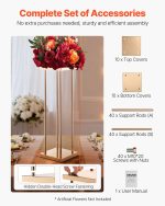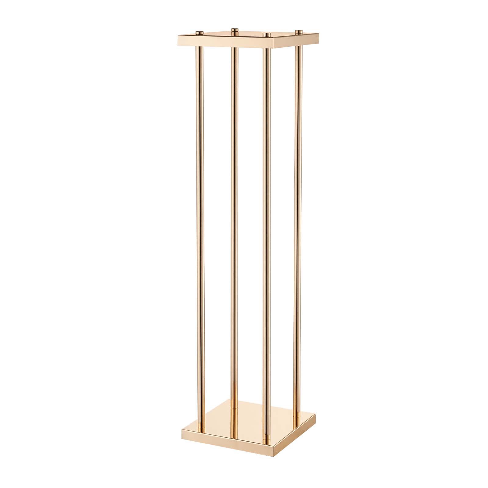 This set includes 10 gold-colored floral stands, each measuring 31.5 inches in height, designed for elegant floral displays. Crafted with a metal laminate finish, these cylindrical cubic columns provide sturdy and stylish platforms for arrangements at weddings, parties, birthdays, and home events. The durable metal construction ensures stability while adding a sophisticated centerpiece element to any event decor. These flower stands are versatile accent pieces ideal for enhancing ceremonial or celebratory atmospheres.