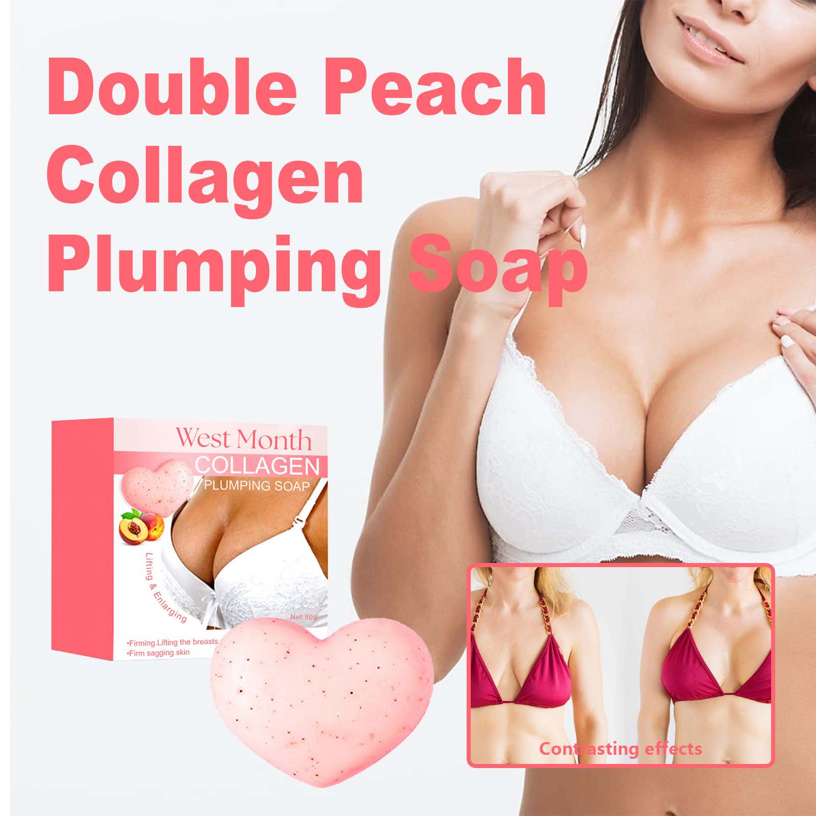 West&Month Double Peach Chest Soap provides firming, moisturizing, and anti-sagging care for chest skin during showers.