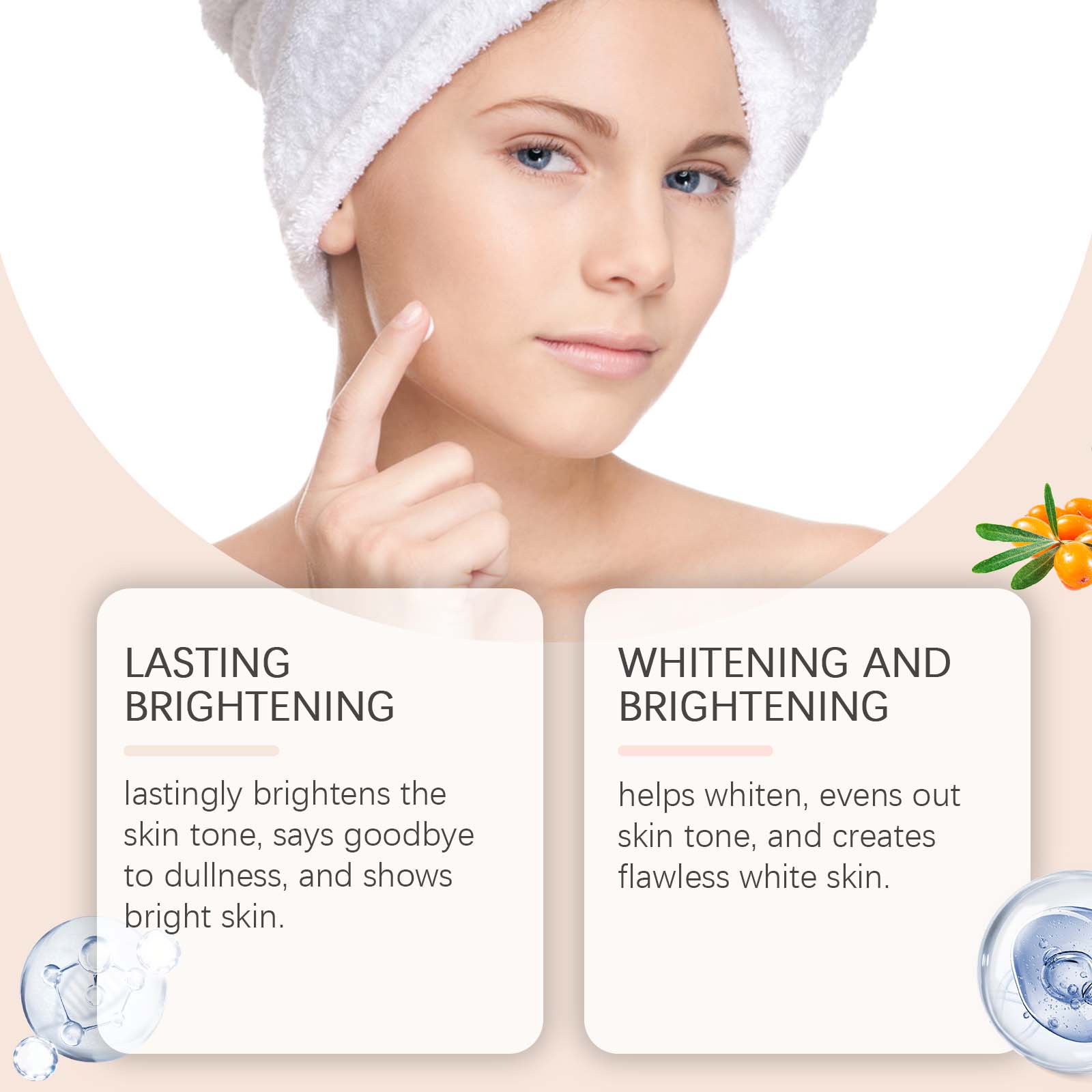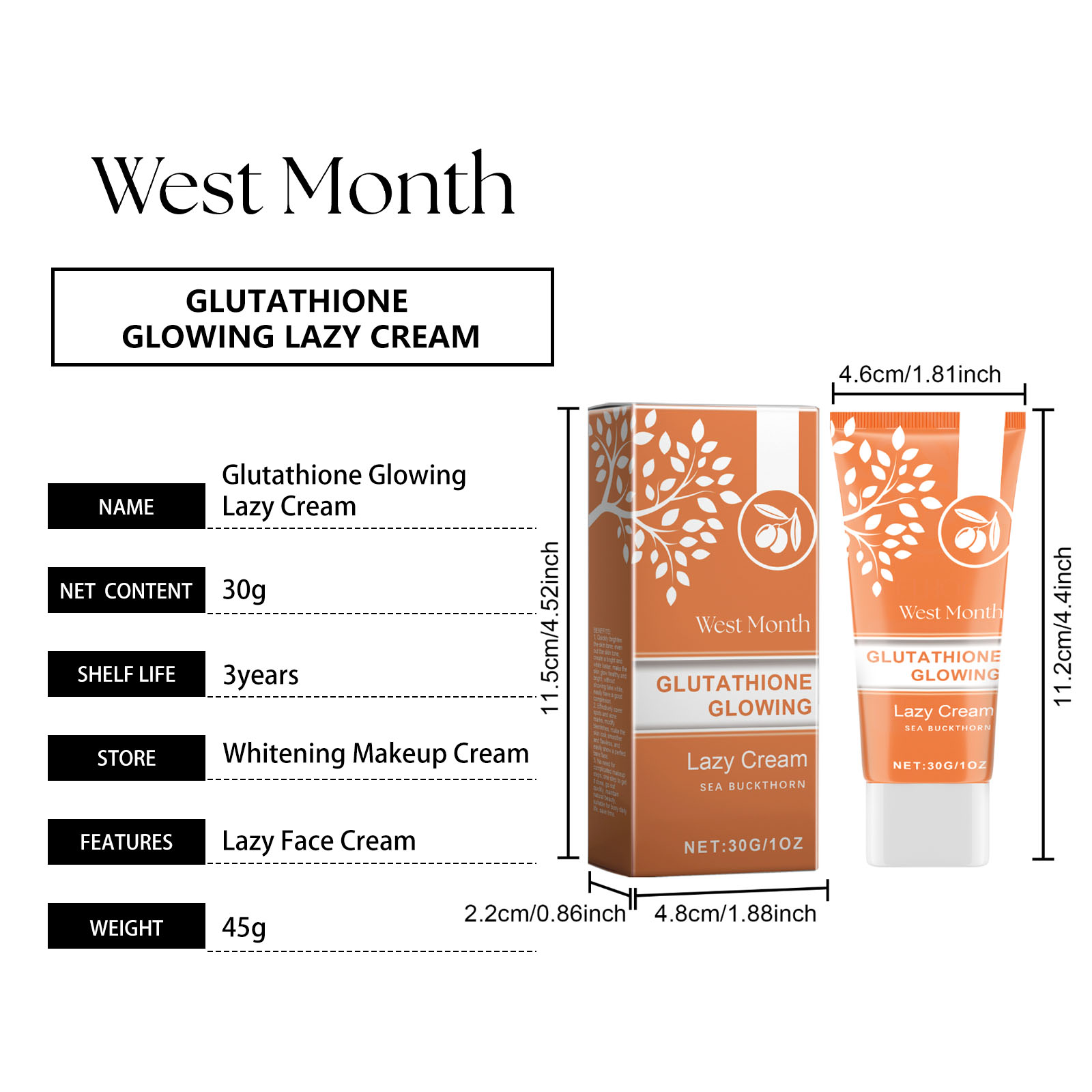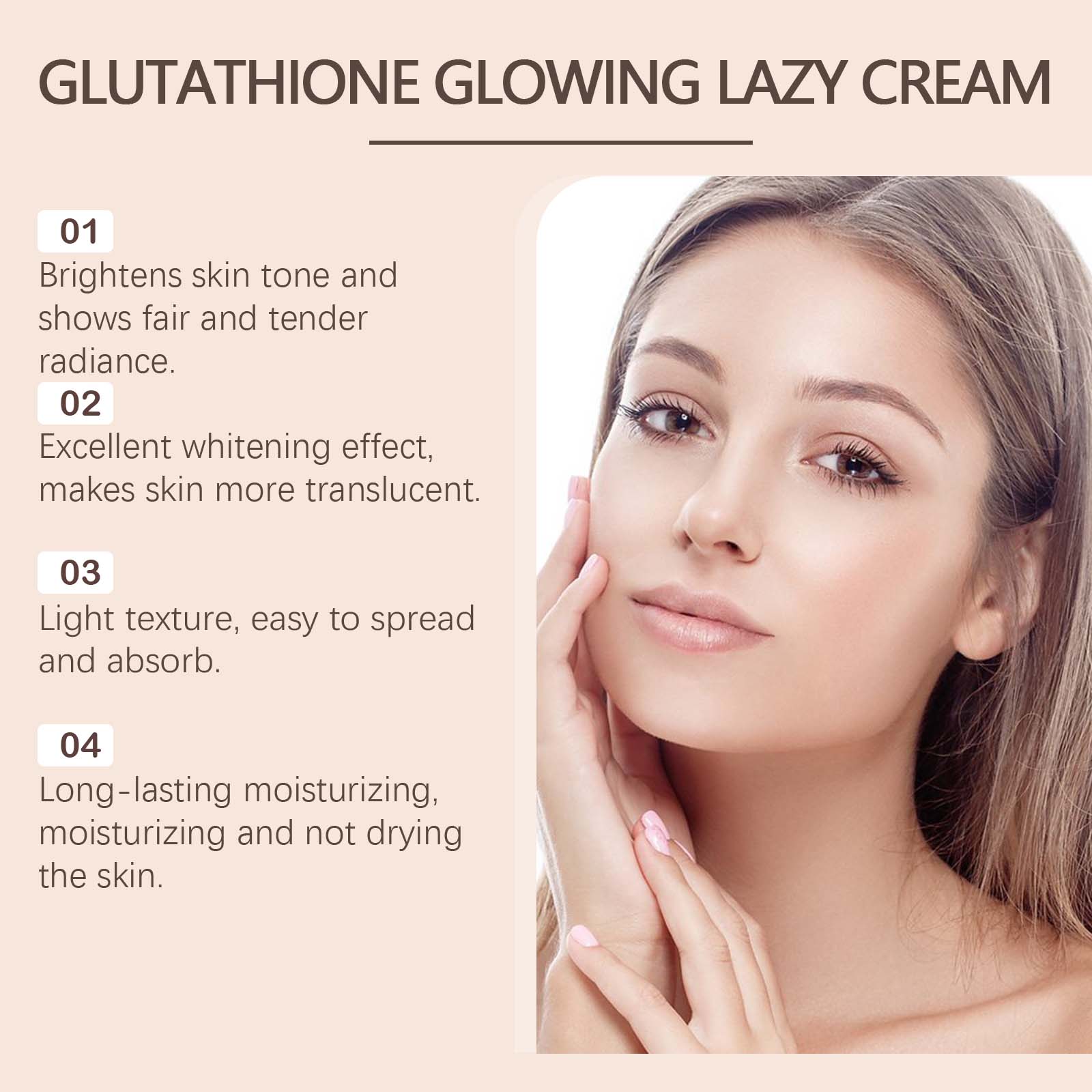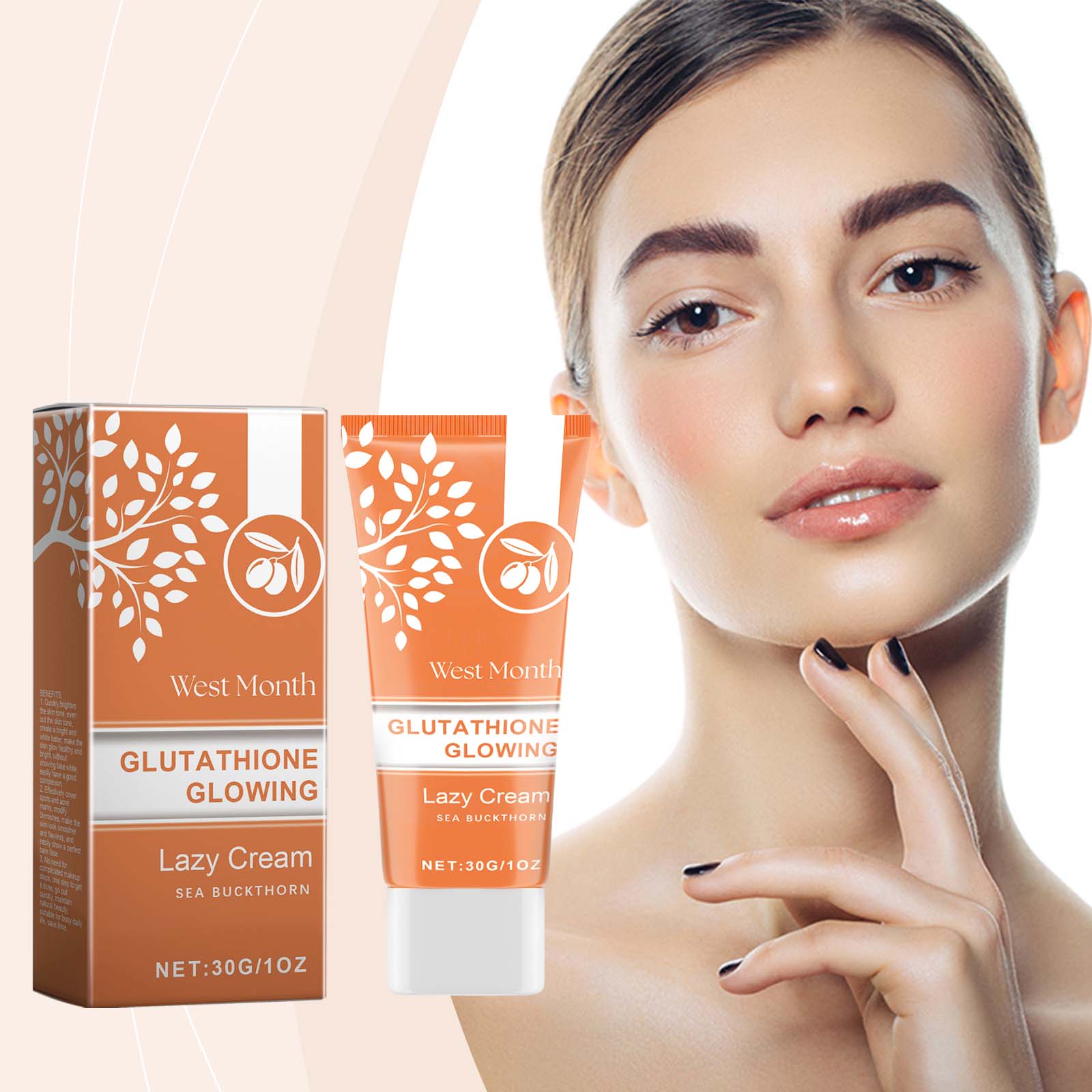 Our cream contains glutathione, sea buckthorn extract and vitamin C. It can brighten the skin for a long time, say goodbye to dull, brightening skin. Helps whiten, even out skin tone and create flawless white skin. Its use is simple: 1. Wash your face and keep it dry. 2. Apply proper amount of cream to face evenly and massage until completely absorbed. Brightens skin and gives a pale, soft glow.