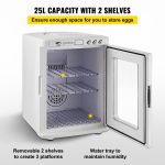 25L white reptile incubator with digital control, heating and cooling, adjustable 5-42°C for small reptiles and eggs, compatible 12V/110V.