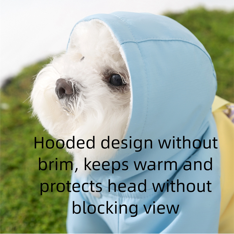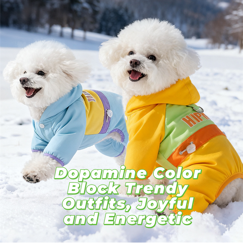 Windproof, anti-collision fleece jacket designed for small and medium dogs like Bichon Frise. High-end, four-legged pet winter clothing.
