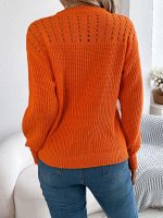 This women’s pullover sweater combines casual comfort with a chic design, featuring a solid color palette and distinctive hollow out lantern sleeves. Crafted for a relaxed fit, it offers lightweight warmth and easy layering options. The unique sleeve design adds subtle elegance, making it suitable for both everyday wear and special casual occasions. The breathable fabric ensures comfort throughout the day while maintaining a fashionable silhouette.