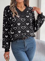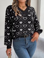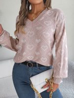 This women’s pullover sweater features a charming color block heart pattern and distinctive lantern sleeves, offering both comfort and style. Crafted from a soft, breathable fabric blend, the sweater provides warmth while ensuring ease of movement. The relaxed fit and versatile design make it suitable for casual occasions and layering during cooler weather. Its unique sleeve construction adds a fashionable touch without compromising comfort, making it an ideal addition to any wardrobe.