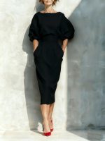 This women’s dress features a timeless A-line silhouette enhanced by a high waist design that accentuates the figure. The bubble sleeves add a fashionable and voluminous detail, creating a unique gathered effect. Crafted for comfort and style, the dress presents an elegant look suitable for various occasions. Its structured yet flowing shape ensures ease of movement while maintaining a polished appearance.
