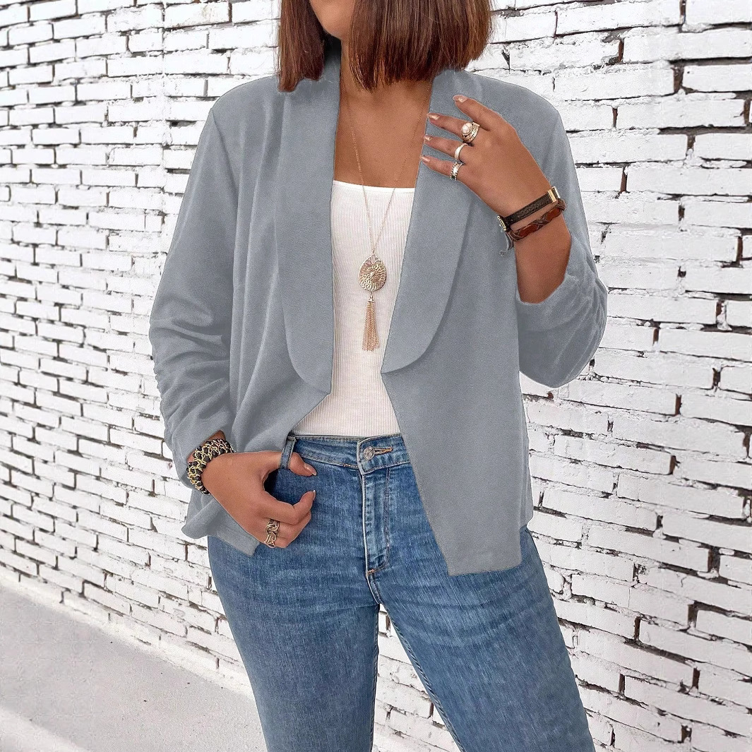 Elegant women’s cardigan jacket featuring long sleeves for versatile casual wear. Perfect for layering in various settings.