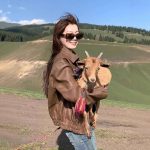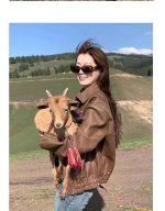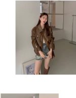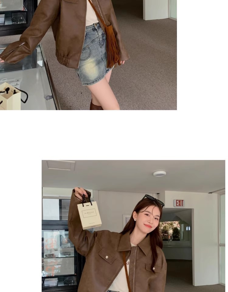 Classic American retro-style women’s loose leather coat in solid color, perfect for casual wear and comfortable fit.