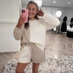 Stylish women’s casual set featuring color-block design, high-waist fit, and long sleeves for comfortable, everyday wear.