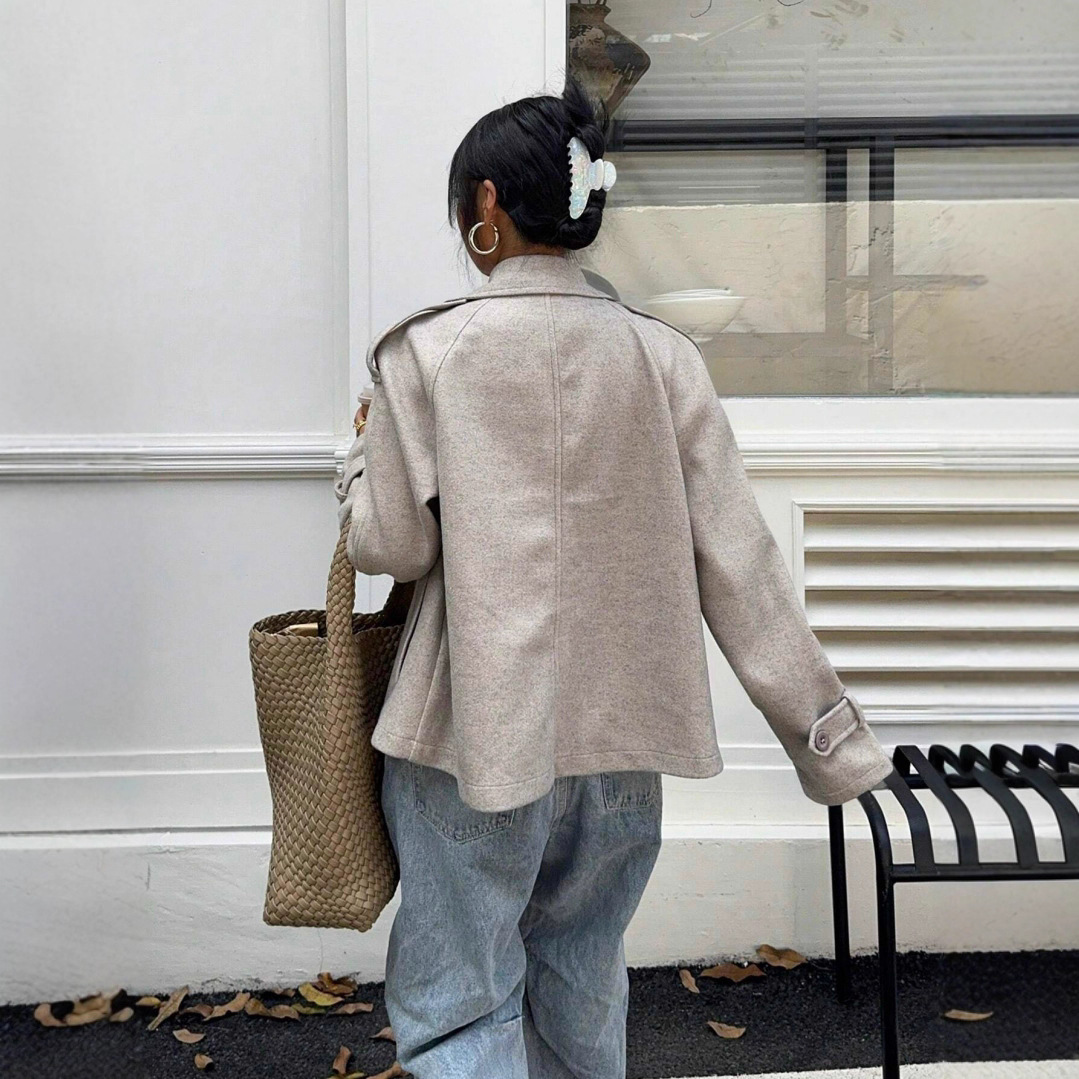 Stylish women’s woolen coat featuring a double button closure and loose lapel design for comfortable, elegant casual wear.