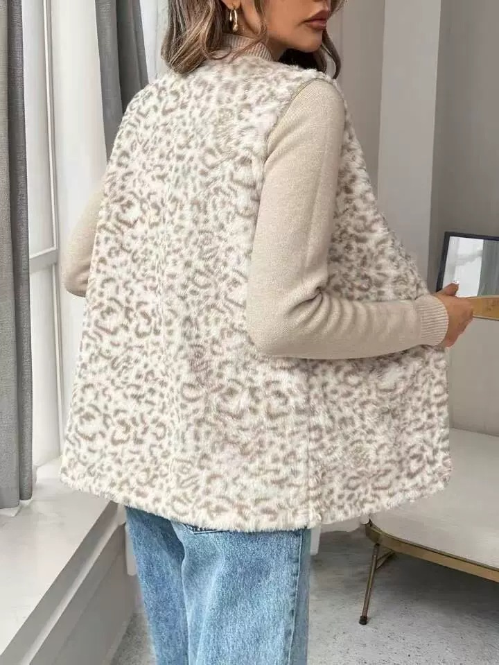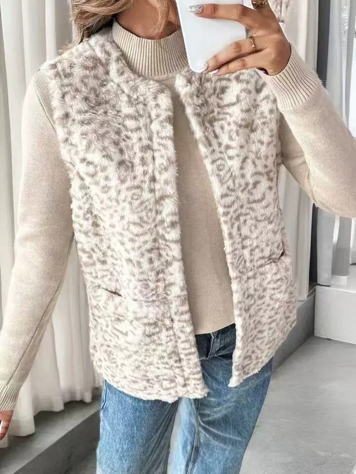 Soft and cozy women’s double-sided plush coat with printed design and convenient pockets for casual wear.