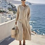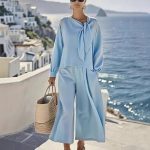 Stylish women’s two-piece set featuring a solid color long sleeve top and matching pants, perfect for casual comfort and versatile wear.