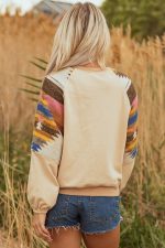 This women’s casual sweatshirt features a loose fit and attractive color-blocked printed patterns, providing both comfort and style. Crafted for everyday wear, the lightweight fabric ensures breathability while maintaining warmth. Its relaxed silhouette allows ease of movement, making it ideal for casual outings or leisure activities. The combination of vibrant color matching and quality print enhances the overall aesthetic, offering a fashionable layering piece for diverse wardrobes.