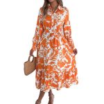 Elegant women’s long sleeve floral dress ideal for spring and summer leisure occasions featuring comfortable, breathable fabric.