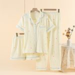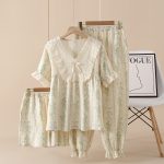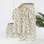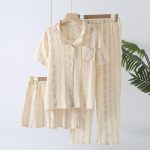 Elegant women’s three-piece set crafted from crepe cotton yarn, offering comfort and style for versatile wear.