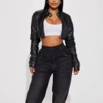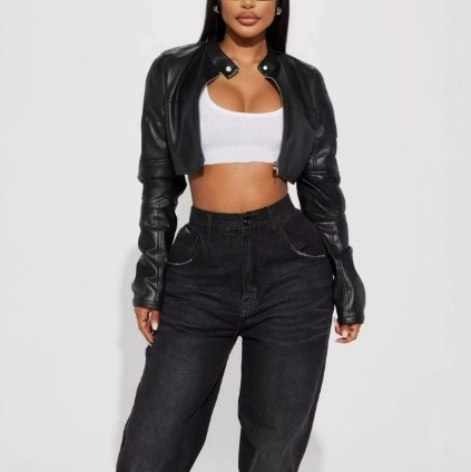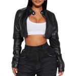 Be the first to review “Women’s Cropped Biker-style Leather Jacket With Solid Color Contrast And Zipper” Cancel reply