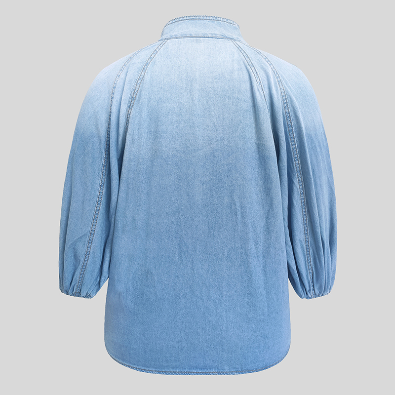 This women’s denim blouse is crafted from durable solid-color fabric, featuring elegant puff sleeves that add volume and style. Designed with a stand collar and a tasteful bow detail at the neckline, it blends classic and contemporary elements for versatile wear. Suitable for both spring and fall, this top offers a comfortable fit while maintaining a fashionable look ideal for various casual or semi-formal occasions.