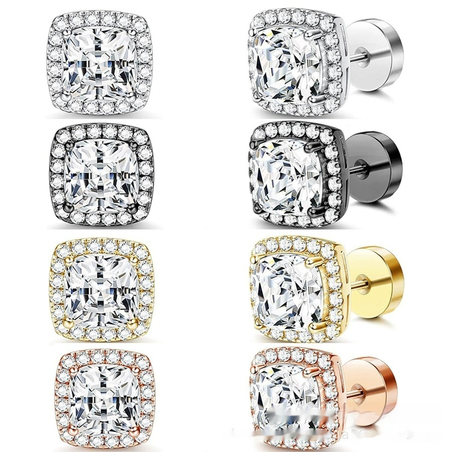 Sophisticated women’s diamond square bag earrings featuring a sleek design, perfect for enhancing any outfit with a touch of elegance.