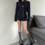 Elegant women’s two-piece suit featuring a stylish top and shorts, perfect for a refined, dramatic look.
