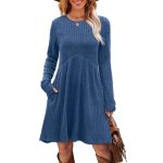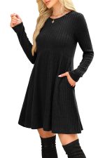 Elegant women’s bohemian dress featuring brushed fabric with distinctive sunken stripe design for a comfortable, stylish look.
