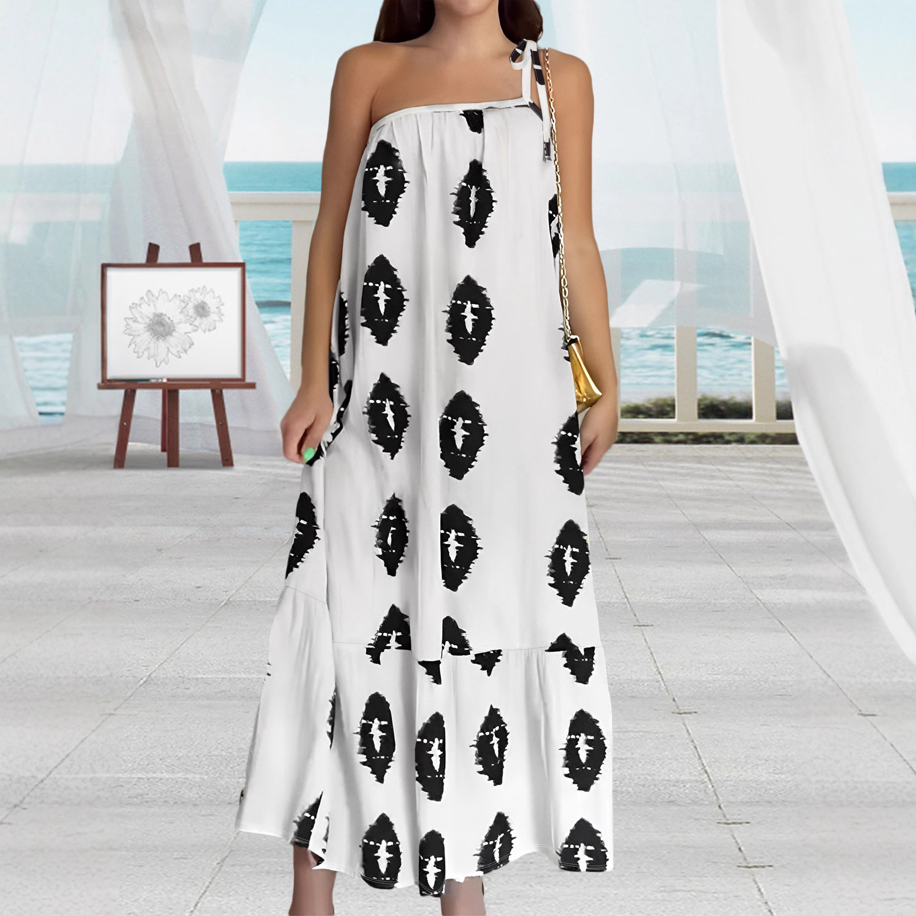 This women’s dress features a one-shoulder design complemented by a lace-up detail, offering a stylish and flattering fit ideal for beach outings. Crafted from lightweight, breathable fabric, it ensures comfort in warm weather while maintaining an elegant look. The dress is tailored to provide ease of movement and a relaxed silhouette, perfect for casual seaside events or summer gatherings.