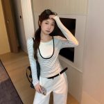 This women’s slim-fit top embodies contemporary Korean fashion, designed specifically for early autumn. Crafted to contour the body elegantly, it provides a flattering silhouette while ensuring comfort. Made from high-quality materials, the top offers durability and breathability, making it suitable for transitional weather. Its minimalist design is versatile, easily complementing various wardrobe styles for a chic, refined appearance.