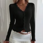 Be the first to review “Women’s Elegant Lace Trim V-Neck Blouse, Ruffle Detail Long Sleeve Button-Down Shirt For Spring Fall Wear” Cancel reply