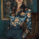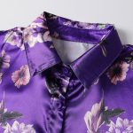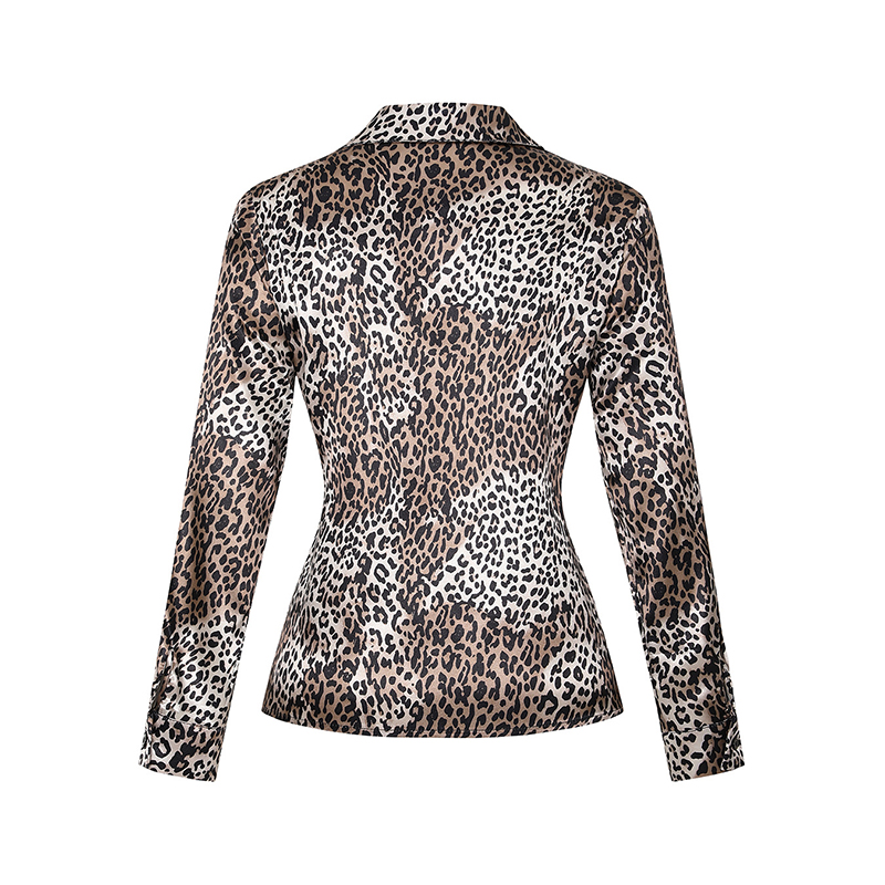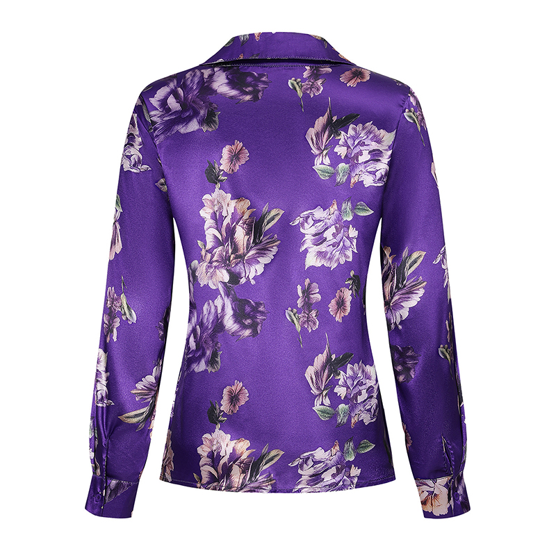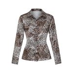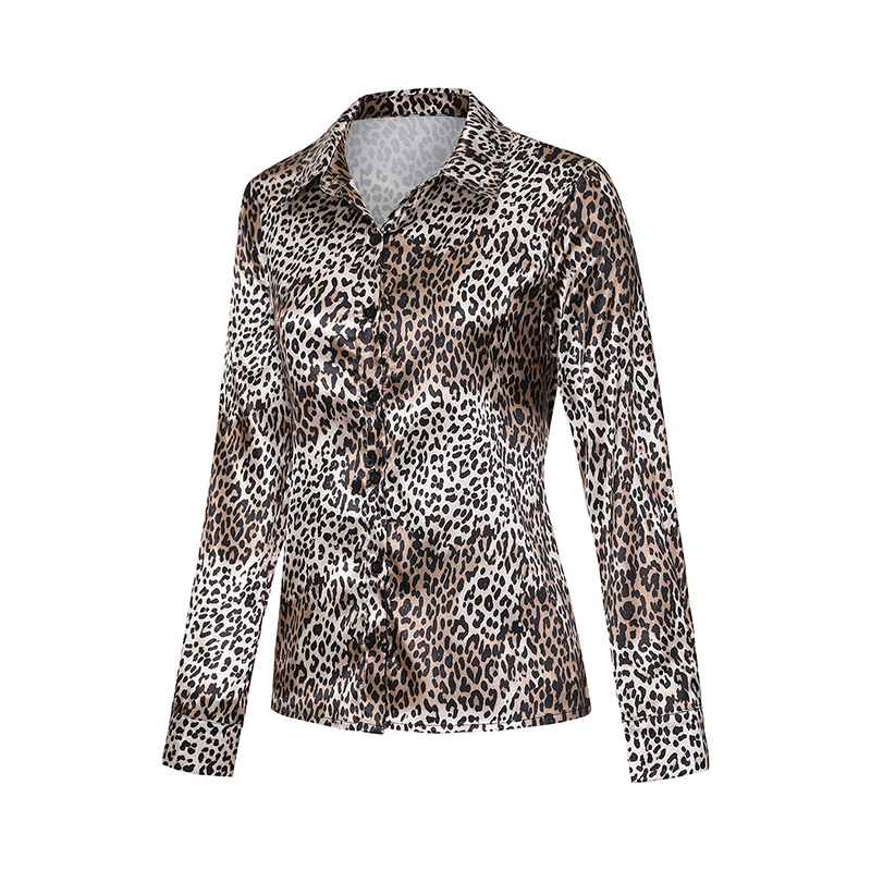 This women’s long sleeve shirt is crafted from smooth satin fabric, offering a refined sheen that enhances its elegant appeal. The design features a classic lapel collar and a full button-down front for a polished look. Tailored with a tapered waist, it provides a flattering silhouette suitable for both spring and autumn seasons. This fashionable piece combines comfort with sophistication, making it ideal for various occasions.