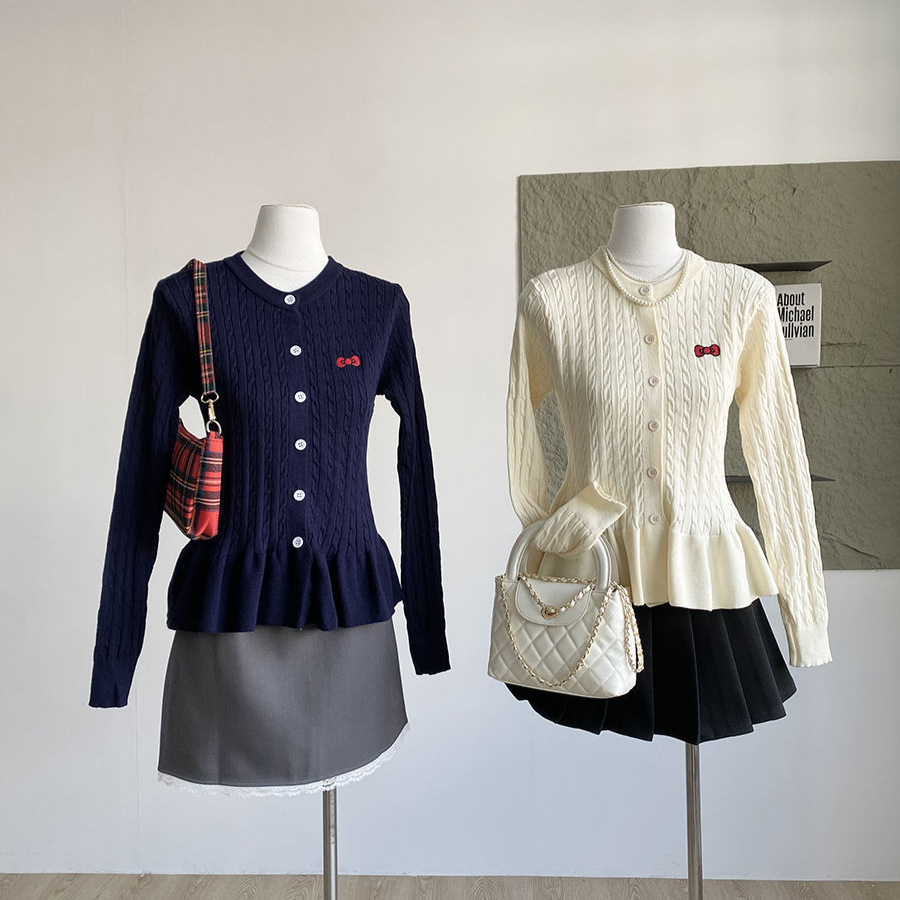 Elegant women’s cardigan featuring embroidered bow detail and twisted knit design for a stylish and comfortable fit.