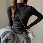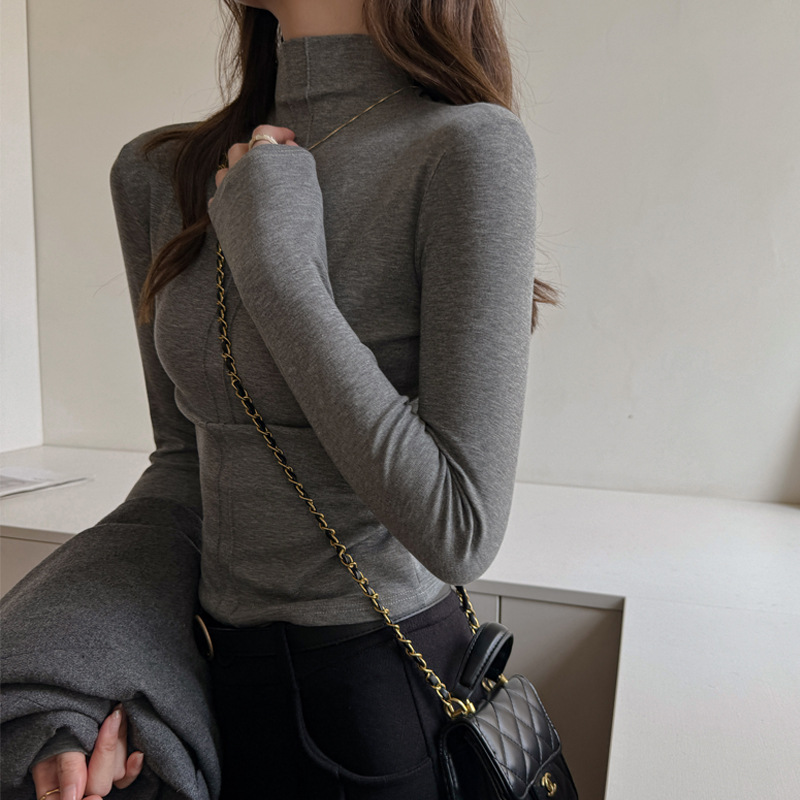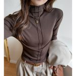 Elegant women’s half-turtleneck long-sleeve top offering versatile style and comfortable fit for various occasions.