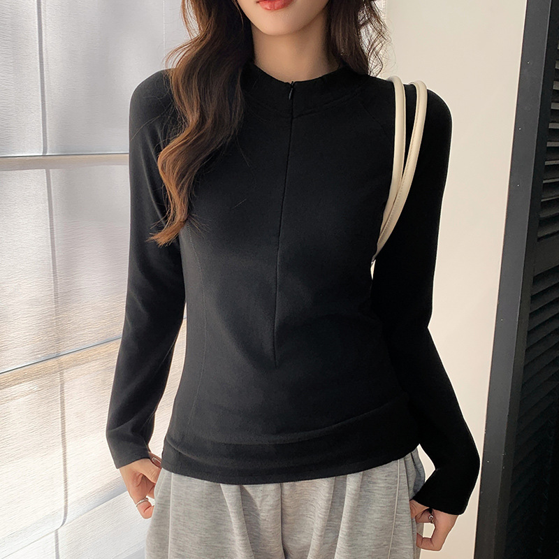 This women’s half turtleneck bottoming shirt features a convenient front zipper and is designed to provide warmth during autumn and winter. Crafted from soft, insulating fabric, it offers comfortable wear and excellent heat retention. The slim fit makes it ideal as a base layer or standalone piece, combining style with functionality for cooler weather.