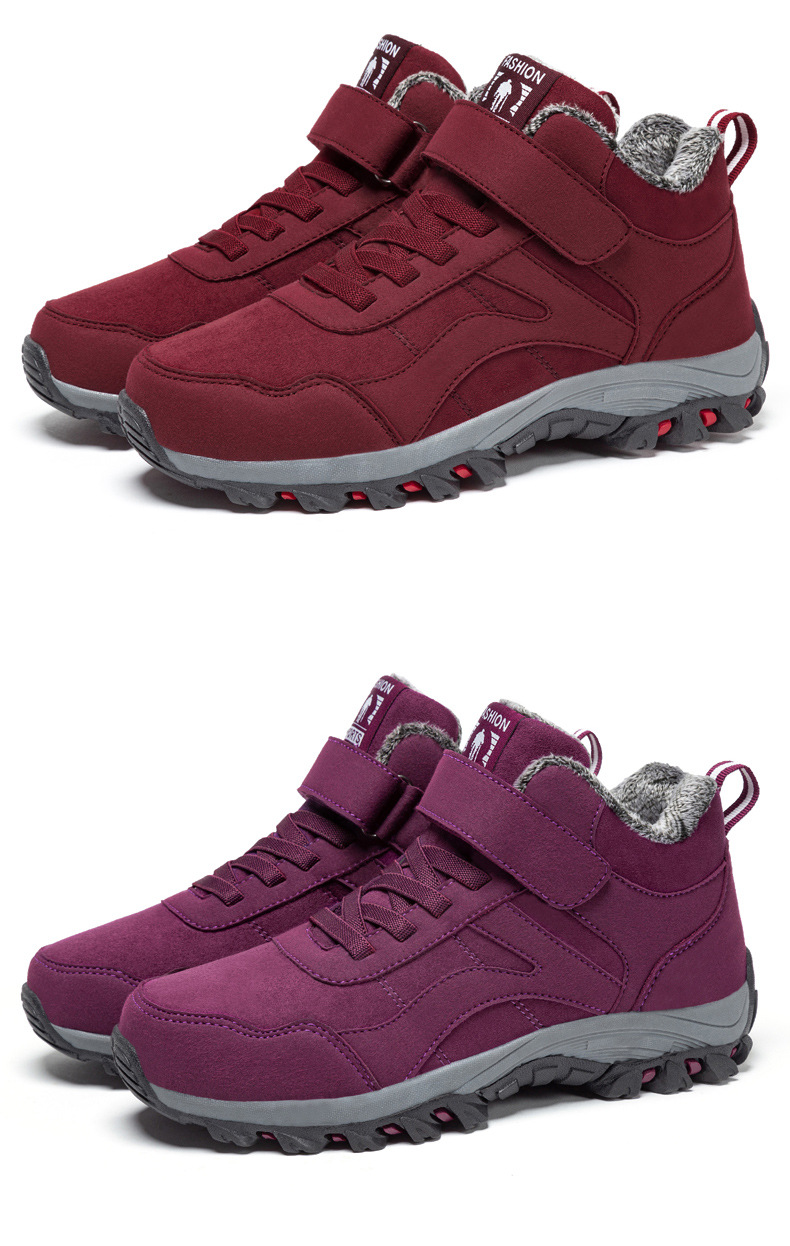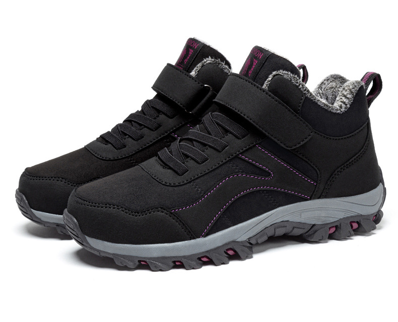 Durable women’s high-top walking shoes with fleece lining offering warmth and support for daily outdoor activities.
