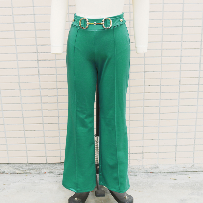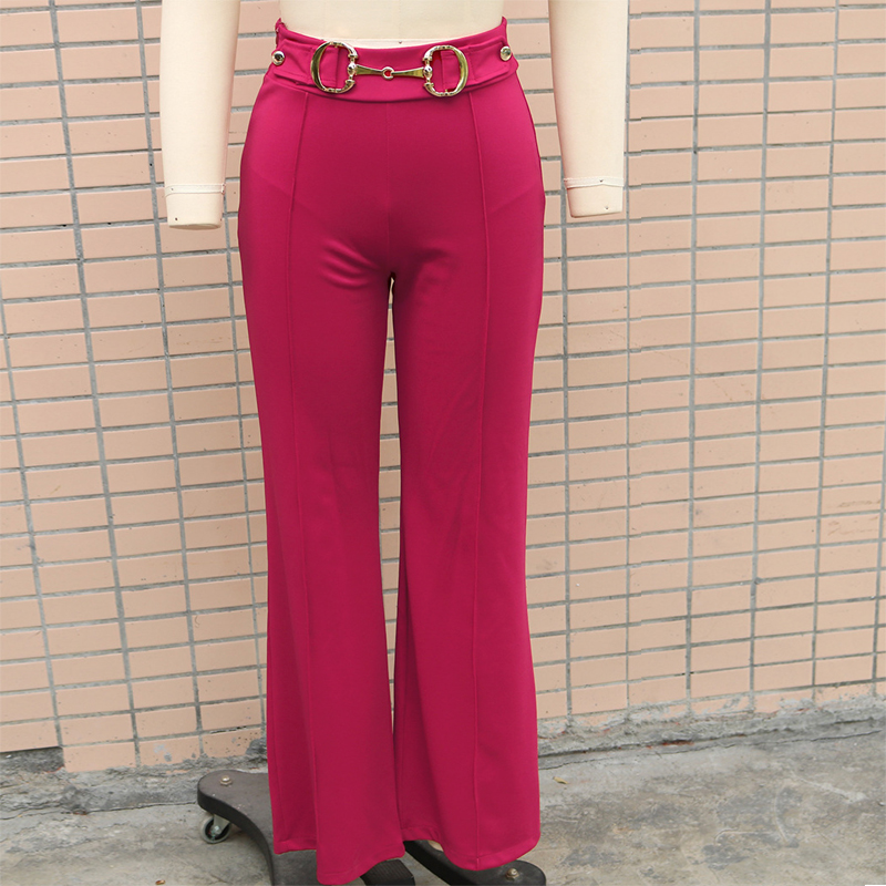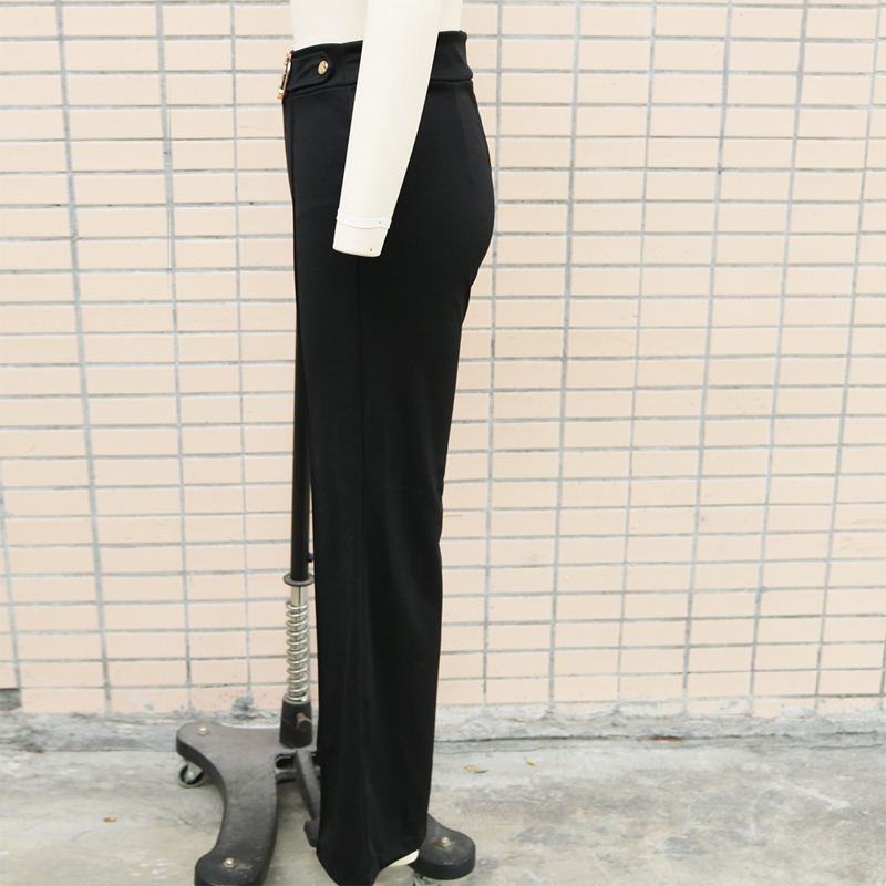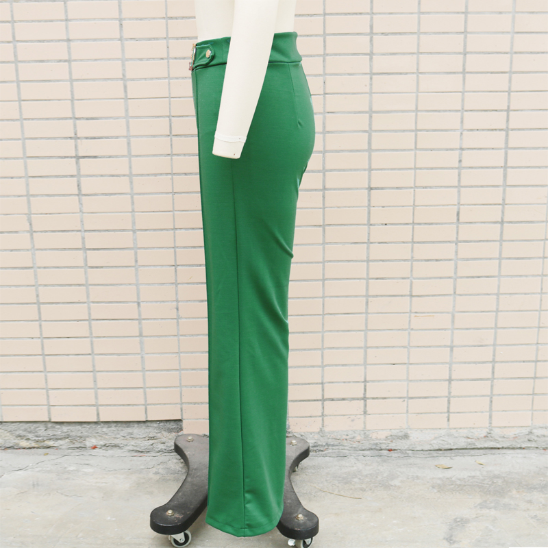 Elegant women’s high-waisted straight leg trousers featuring a decorative waist, perfect for office wear and professional styling.