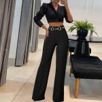 Be the first to review “Women’s High-Waisted Straight Leg Pants, Solid Color Tailored Trousers With Decorative Waist For Office Wear” Cancel reply
