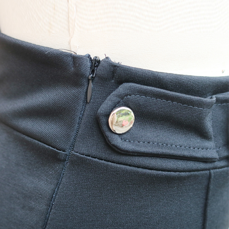 These women’s high-waisted tailored trousers feature a straight leg design and a solid color palette for a refined appearance. Crafted to provide a flattering fit, the pants include a decorative waist detail enhancing their professional and polished look. Suitable for office environments, these trousers combine comfort with sophisticated style, making them an essential addition to a business wardrobe.