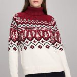 Elegant women’s jacquard turtleneck sweater, ideal as cozy inner wear for fall and winter seasons.